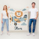 Buckle up for adventure with our adorable personalised lion pilot fleece blanket! This cuddly blanket features a whimsical lion perched proudly in the cockpit of a charming aeroplane, soaring amongst fluffy pastel clouds and twinkling stars. The soft light beige background creates a calming scene, perfect for soothing your little one. Personalise this blanket with your child's name for a truly unique and cherished keepsake.