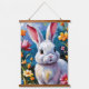 Adorable White Bunny Surrounded by Vibrant Flowers Hanging Tapestry