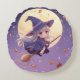 Adorable Witch Flying Over the Moon Round Pillow