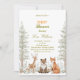 Invite your loved ones to celebrate the upcoming arrival with our adorable Woodland Animals Baby Shower Invitation! This enchanting design captures the magic of a serene forest with charming watercolor illustrations of a graceful deer, a cute raccoon, and a sly fox, all nestled amongst lush green pine trees and delicate foliage. It's the perfect choice for a nature-inspired or woodland-themed baby shower, suitable for both a baby boy or a baby girl.
