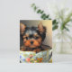 Adorable postcard features AI rendered digital painting of a Yorkie (Yorkshire Terrier) puppy in a fancy flowered teacup.