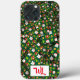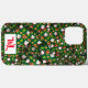 Marvellous image on a phone case of Christmas bears, sweaters, bells, and Christmas trees.