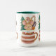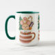 A precious animal in a cup of cheer with Christmas elements on a mug of your favourite, holiday beverage.