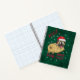 Charming image on a custom notebook of a cartoon pug wearing a Santa hat and saying, "Happy Paw-lidays." Click on "Personalise" to enter your own monogram or name.