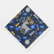 Marvellous image on paper napkins of a Scandinavian style pattern with deer and other Christmas elements. Vivid colours in royal blue, navy blue, grey, and yellow.