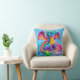 Adorable, brightly coloured dragon on a throw pillow.