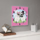 Loveable image on a clock of a llama couple in their wedding outfits on a pink background with hearts floating around them. Do you know someone who really loves llamas? Give this as a gift so they'll always think of you.