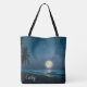 Calming image on a tote bag of a moonlit beach. Take it with you on vacation or just anywhere to remind you of a future vacation you'd like to take.