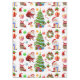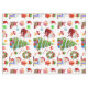 Splendid image on a tablecloth of Santa and other Christmas elements in vibrant holiday colours.