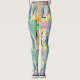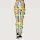 Original design of synthwave/vaporwave style yoga leggings with shapes and a yellow and blue background in the Memphis style.