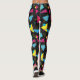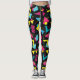 Original design of synthwave/vaporwave style yoga leggings with shapes and a black background in the Memphis style.