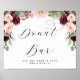 Adore Pink & Burgundy Floral Wedding reception doughnut bar sign with custom text poster - with the words "doughnut bar" written out in a beautiful fancy calligraphy script font. An elegant, chic, yet simple design in a black font and any background colour you choose. Just click the customise further link, shown under the text personalisation area on the right, and choose your custom colour background. This sign template makes it fast and easy to create stunning additions to your wedding decor. complimentary decor, signs, and stationery available in my shop and collection below. If you need something designed that isn't available already please message me on zazzle.