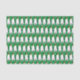A pattern of cute illustrations of an adult penguin and a baby penguin wearing Santa hats among snowflakes against a green background.