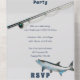 Adult fishing themed birthday party invitation for men. Light grey colour with fishing rod and tarpon fish images, this party invitation template has a detachable reply card. Customise dark blue, printed text in three sections inside the card. The front has a large, all over sea life background on dark blue colour, with light grey text templates for addresses in three places. The design is perfect for celebrating any saltwater fisherman.