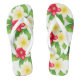 Adult flip flops are shown in white with a lovely tropical flowers print.