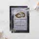 Elegant, moody Gothic gates Halloween party invitation for adults. This design features a full moon, beautiful masquerade mask, and Celtic cross. Reverse features full moon, and a raven on cemetery stone with Celtic cross.