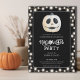 A creepy gothic white pumpkin with sunken black eye sockets and a stitched mouth, with a string light border. Black and white and scary! Use the simple design tool if you prefer to change the font.