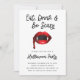 Fun halloween party invitation card featuring an illustration of a bloody lip with fangs. The text says "eat, drink & be scary."