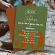 Surprise party invitations for a man. Celebrate a milestone birthday with fun and modern invitations. Army green colour with dark, rust orange numbers for his age. Light grey wording is set up for a surprise party. At the top, "Shhhh... it's a surprise" with bold, printed text for his age and name. All party info is added in a paragraph. A modern, minimalist style that will work for guys of all ages.