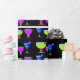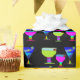 Brightly coloured cocktails on black gift wrap. Lime green, hot pink, and blue, tropical drinks and martini's are original, hand drawn art.