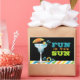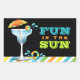 Dive in, the margaritas are fine! Fun and whimsical design with a blue margarita as the swimming pool, a beach umbrella swizzle stick and splashing beach ball and pool float.