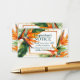 On the reverse, the tropical framing continues, encircling a warm closing note from the couple, expressing their excitement to celebrate together. The vibrant colours, elegant gold detailing, and flowing composition make this enclosure card both eye-catching and tasteful.