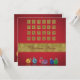 Merry Christmas illustration featuring an advent calendar and colourful Christmas baubles on a red background.