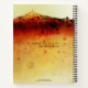 This is a couple travel vacation plans notebook with 'Adventure Awaits' title in lovely script font. A beautiful abstract digital art design featuring a orange red mountain landscape inspired by Spain as background on the front page and backpage.