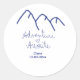 Adventure awaits blue mountain heart add name classic round sticker