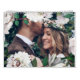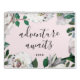 Beautiful modern script "adventure awaits" floral border calendar includes a personalised photo and editable statement text for each month. Front and back cover feature a beautiful white floral wreath and greenery. The back cover includes a full photo with wreath.