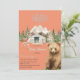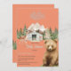 This elegant rustic burnt orange Adventure Awaits theme baby shower invitation will be the perfect beginning to your mountain and woodlands baby shower. Featuring watercolor mountains, a camping tent and cute forest animals like bear, rabbit and deer. A modern Let the Adventure Begin gender neutral invite for a forest inspired baby shower.