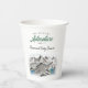 This baby shower paper cup offers an adventure theme showcasing a watercolor wilderness landscape of mountains, ponds and pine trees. These personalised cups will be a fun accent to your baby shower event.