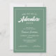 This couples baby shower invitation features the text "Our Greatest Adventure Awaits" on a forest sage green background. Custom text allows you to personalise with the name of the couple. This is perfect for your rustic or outdoor event.