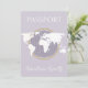 Travel-themed Gender Neutral Passport Baby Shower Invitation featuring soft lavender background, gold-accented globe illustration, and customisable event details.