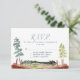 Adventure Awaits Cards. This country-style RSVP card is designed with watercolor-style evergreen trees and country-style scenery. Coordinating wedding decor is available at Metro-Event.com and Metro-Events on Zazzle.