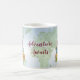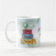 Suitcases in a watercolor effect are stacked and ready for the big move. A globe sits on top of the suitcases against a watercolor world map. Great mug to for the global traveller, or use as a favour at a farewell or leaving party of any kind, whether it's an international move, career or job change, retirement, sabbatical. Available with matching products.