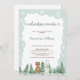 Embracing a gender-neutral palette, this invitation welcomes all to share in the anticipation and excitement of the imminent arrival. A charming touch is added with the presence of a sweet bunny and a cuddly bear, nestled among the winter scenery, symbolising the warmth and cosiness of this new journey into parenthood.