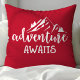 Adventure Awaits Wilderness Quote Red and White Cushion