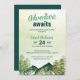 A charming watercolor design featuring mountains, pine trees, and a rustic feel, perfect for a boy's woodland-themed baby shower. "adventure awaits" Easily customise with your party details.