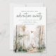 If you love simple watercolor style, this invitation is right for you. The invitation features an elegant design, with a soft, white background with delicate mountains in the background. In the centre, the party details are beautifully scripted in a green text exuding an air of sophistication. Invite guests to your baby shower party in style. Background colour and text is editable.