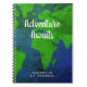 Adventure Awaits world map custom journal notebook for traveller. Vintage planet earth globe design with stylish brush script typography template. Unique book for travel experiences, diary notes and more. Cool Birthday gift idea for travelling friends and family with wanderlust. Your journey starts now, just go! Add your own inspirational quote and personalised name or monogram letters.