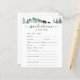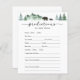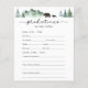 Baby shower predictions card featuring watercolor evergreen trees, mountains and mama with baby bear. A fun way to interact with shower guests.