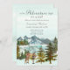 Forest, mountain, adventure begins theme, with momma and baby deer for this baby design. "Let the Adventure Begin!" is the inspiration for this theme. This design has rustic, watercolor mountains with reflecting lake in front, and pine trees surrounding the lake. Adult deer with little fawn facing each other in front.