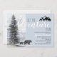 Adventure awaits, rustic woodlands bears baby shower by mail invitation in soft pastel grey blue hues, with a majestic forest pine tree and mountain silhouette. Personalise for your baby shower. See the full suite of products for this design at: https://www.zazzle.com/collections/adventure_begins_woodland_bears_baby_suite-119679877296535208