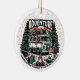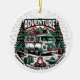 Celebrate the holidays in the great outdoors with this vibrant retro-style Adventure Camper Van ornament. Featuring a classic camper van adorned with Christmas lights, a wreath, and camping gear, this festive design is set against a backdrop of snowy mountains and lush decorated trees. A cosy campfire and camping essentials like logs and an axe complete the scene, making it perfect for outdoor enthusiasts who love to embrace adventure during the holiday season. The playful lettering "ADVENTURE" stands tall at the top, while "Celebrate the Holidays in the Great Outdoors" wraps around the bottom edge.