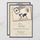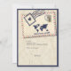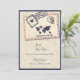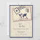 This design captures the spirit of wanderlust and love, blending vintage travel aesthetics with rustic charm. Featuring classic airmail stripes in red and blue, muted beige tones, and subtle map textures, it evokes the feeling of setting off on a grand romantic journey. Elements like postage stamps, world map details, and retro styling make it perfect for couples who dream of a global celebration filled with adventure, connection, and timeless elegance.