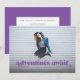 This full bleed photo graduation announcement and invitation features the words "adventures await" in purple. It has space for your graduate's details on the front with even more room for text on the back of the card.