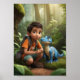 Adventurous Boy and Friendly Dinosaur Poster