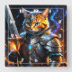 Adventurous Cat Knight Holding a Sword Square Wall Clock
