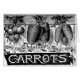 Stylish, intricate vintage etching from the 19th century of 4 different carrot varieties, with the different types of carrots hanging in bunches from hooks on a boarded wall. The names of the varieties are listed under each bunch: French Forcing, Oxheart, Scarlet Horn, Chantenay. Cleaned up to decorate any item in a stylish and modern way. Add your own text to this lovely vegetable picture if you please or just enjoy the detailed black and white Victorian art.